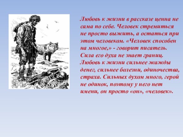 Иллюстрация к рассказу "Любовь к жизни" Джека Лондона воплощает в себе все глубинные эмоции и противоречия, характерные для произведений этого знаменитого писателя. В ней мы видим героя, погруженного в окружающую природу и испытывающего неподдельную любовь к жизни. Картина передает его восторги от простых радостей бытия, открывая перед нами не только его способность наслаждаться прекрасными моментами, но и его силу духа, который позволяет ему справляться с трудностями и оставаться оптимистом в любой ситуации. Иллюстрация является неотъемлемой частью рассказа, подчеркивая его главную тему - силу жизни и способность человека обрести счастье в самых нелегких условиях.
