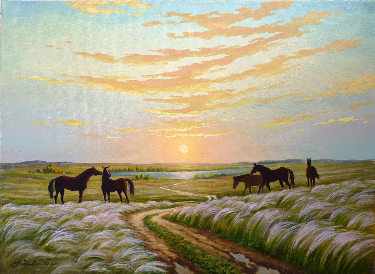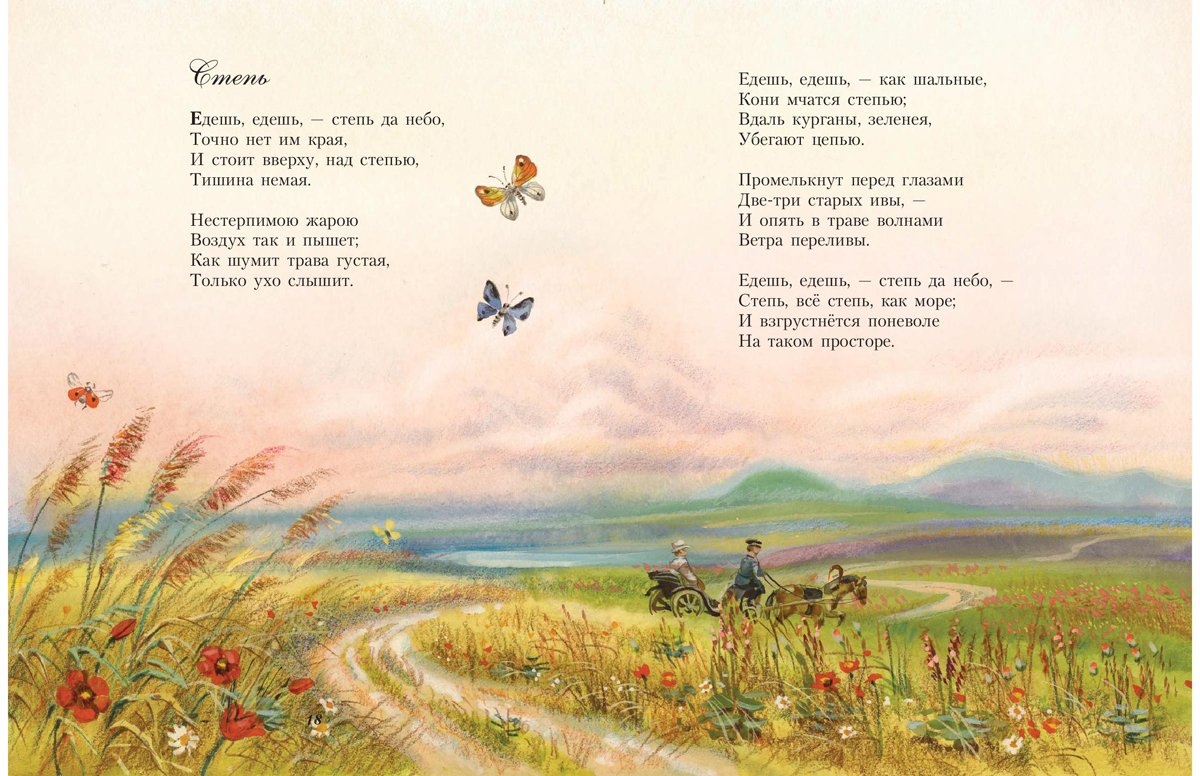 Иллюстрация к стихотворению "Степь" - это визуальное изображение, которое передает атмосферу и настроение этого произведения. Фраза "Степь" часто ассоциируется с необъятными просторами, где трава колышется под ветром, а небо стремится к бесконечности. Иллюстрация может воплощать эту картину, показывая широкие пространства и дикую красоту степи. Она может использовать яркие цвета, чтобы выразить живость и динамичность этого места. Возможно, на иллюстрации можно представить лошадей, которые галопируют по широкому полю или узоры, напоминающие рисунки ветра на поверхности земли. В любом случае, иллюстрация должна захватить воображение и позволить зрителю окунуться в мир степи, описанной в стихотворении.