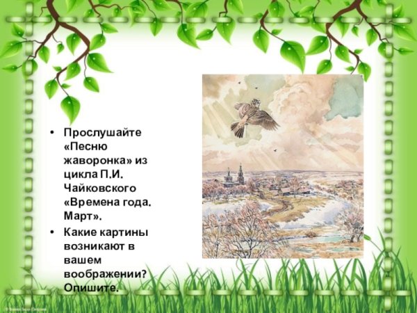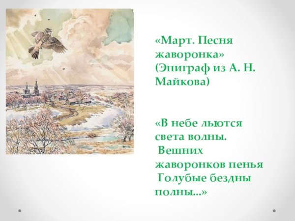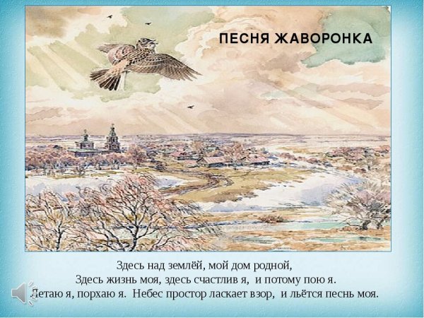 Яркое и проникновенное стихотворение "Жаворонок" олицетворяет нежность и красоту природы, а иллюстрация к нему воплощает эти эмоции и переносит нас в мир благозвучных звуков и ярких красок. На картине изображена птица жаворонок, которая взлетает в небо, окруженная легкими облачками и сияющим солнцем. Ее оперение пропитано светом и воздушностью, а ее пение наполняет сердце радостью и восторгом. Иллюстрация передает всю жизнерадостность и неповторимость этого момента, заставляя нас открыться для прекрасного и насладиться свободой и гармонией, которые только природа может подарить. Взглянув на эту иллюстрацию, мы погружаемся в мир поэзии и мелодии, испытывая волнующие чувства и восхищение перед бесконечными просторами неба.
