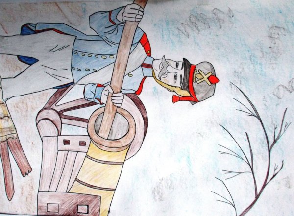 Иллюстрация к произведению "Бородино" выполнена с использованием карандаша, что придает ей особую элегантность и тонкость. Работа отличается высоким уровнем детализации и точности передачи мельчайших деталей. На иллюстрации изображены герои битвы при Бородино, атмосфера сражения и напряжение момента перед подвигом. Каждая линия и штрих карандашной работы дополняют друг друга, создавая впечатление живого рисунка, который передает дух и силу исторических событий. Эта иллюстрация позволяет зрителю окунуться в эпоху Бородинской битвы и ощутить настоящую героическую атмосферу.