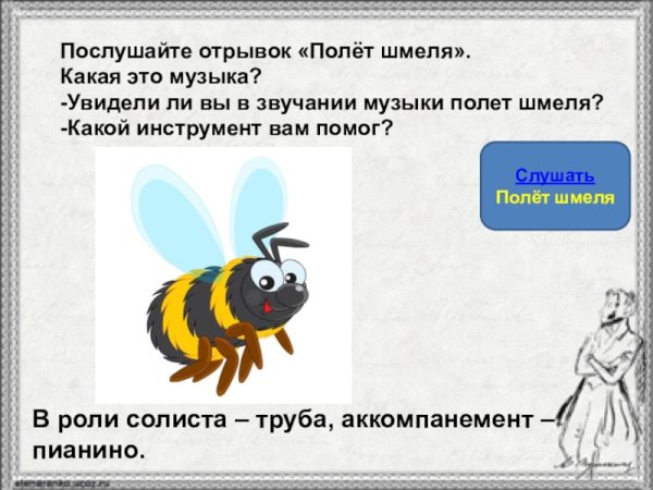 Иллюстрация к произведению "Полет шмеля" является визуальным отображением главной темы и настроения произведения. Рисунок позволяет зрителю окунуться в мир легкости, свободы и энергии, которые приходят с полетом этого небольшого насекомого. Шмель, с изящными крыльями размахом и яркими цветами на теле, нарисован с особым вниманием к деталям, чтобы передать его неповторимую красоту и грацию. Фон может быть представлен как яркий и красочный, отражая прекрасную природу, или абстрактный, чтобы подчеркнуть абсолютное волшебство момента полета. Эта иллюстрация привносит в произведение дополнительный эмоциональный слой и заставляет зрителя ощутить все магию и великолепие удивительного полета шмеля.