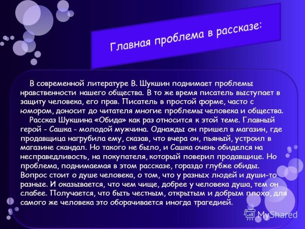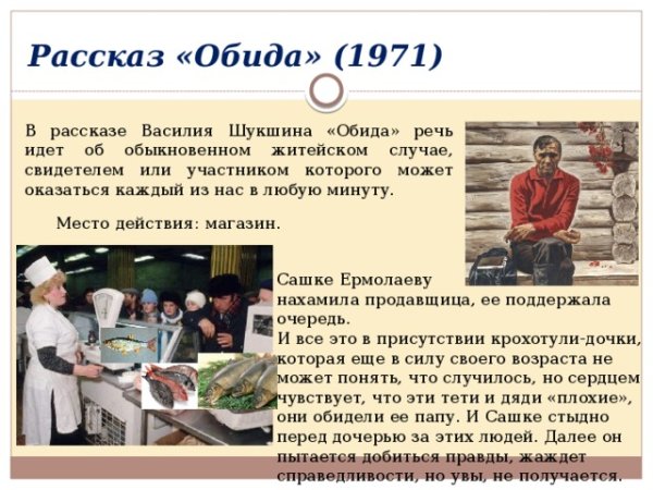 Иллюстрация к рассказу "Обида" Шукшина ярко и точно передает эмоциональную напряженность произведения. На картине можно увидеть главного героя, который смотрит вдаль, его лицо выражает горечь и разочарование. Вокруг него расстилаются заснеженные поля, символизирующие холод и одиночество. Оттенки серого и синего дополняют общую атмосферу печали и отчаяния. Иллюстрация подчеркивает тему обиды и ее влияние на жизнь человека, вызывая у зрителя сильные эмоции и задумываться о механизмах возникновения конфликтов и последствиях непрощения.