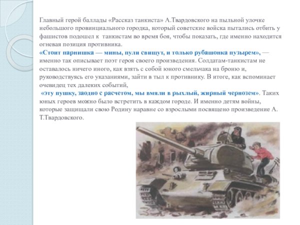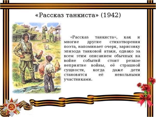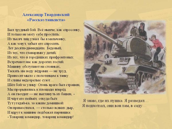 "Рассказ танкиста" - захватывающая история, которая погружает читателя в мир боевых действий и героизма. Это произведение, написанное с яркими и красочными описаниями, позволяет увидеть военные сражения глазами настоящего танкиста. Иллюстрации, прилагаемые к произведению, добавляют новый уровень реалистичности и помогают визуализировать всю интригу и напряжение во время боевых действий. Каждая страница оживает благодаря эмоциональной глубине и детализации иллюстраций, которые передают атмосферу битвы и подчеркивают важность каждого шага танкиста. "Рассказ танкиста" - это произведение, которое нельзя пропустить для всех любителей военной истории и желающих окунуться в мир героических подвигов танкистов.