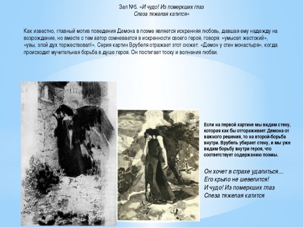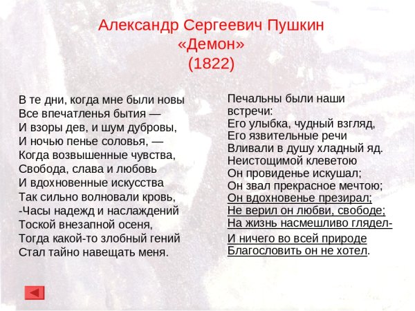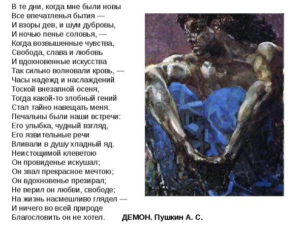Демон - одно из самых известных стихотворений великого русского поэта Александра Сергеевича Пушкина. Это произведение, написанное в 1823 году, считается одним из наиболее ярких и загадочных в его творчестве. В нем Пушкин раскрывает тему любви демона к человеческой женщине, которая приводит к несчастному концу для обоих. Насыщенные образы и глубокий философский подтекст делают это произведение поистине исключительным. Для более полного погружения в мир стихотворения, иллюстрация может быть прекрасным дополнением, позволяющим визуализировать персонажей и события, оживить слова поэта и передать атмосферу его произведения.