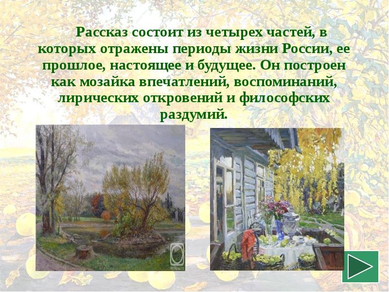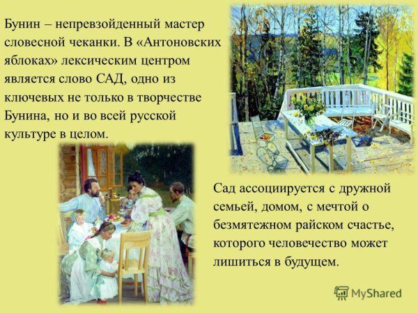 Иллюстрации к рассказу "Антоновские яблоки" Ивана Бунина представляют собой визуальные интерпретации иллюстратора произведения. Они помогают читателю еще глубже погрузиться в атмосферу и события рассказа, передавая эмоции и настроение героев. Используя мягкие тона и детальную проработку деталей, иллюстратор создает образы природы, городского пейзажа и персонажей, которые оживают на страницах книги. Иллюстрации становятся своеобразным окном во внутренний мир произведения, раскрывая его новыми грани и позволяя читателю визуализировать происходящее. Они добавляют глубину и эстетическое удовольствие от чтения, делая произведение еще более привлекательным для публики.
