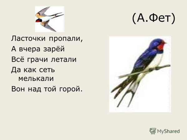Иллюстрация к стихотворению "Ласточки" Фета - это великолепное творение, которое передает нежность и красоту природы, а также символизирует верность и свободу. На картине можно увидеть изящную ласточку, летящую в небе среди облачного пространства. Крылья птицы изображены с таким мастерством, что словно они застигают момент полета. Оттенки голубого отражают спокойствие и безмятежность, а яркий желтый цвет добавляет солнечного света и радости. Иллюстрация к "Ласточкам" Фета призывает нас ощутить свободу и красоту мира вокруг, погрузиться в безграничные просторы природы и насладиться каждым мгновением.