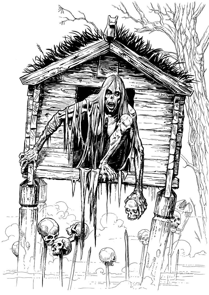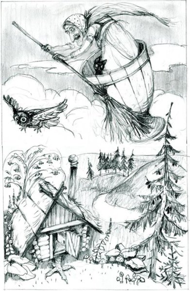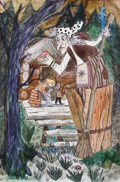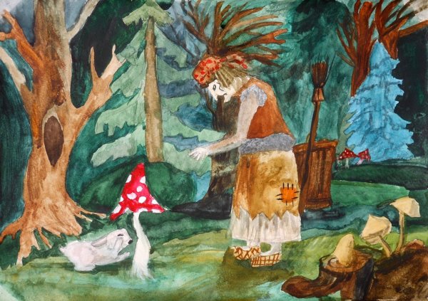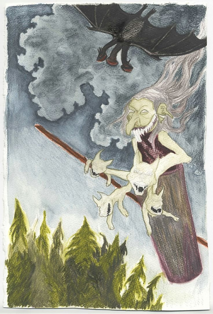 Иллюстрация к произведению "Баба Яга" представляет собой яркий и уникальный образ, который воплощает в себе все характерные черты этого знаменитого персонажа из славянской мифологии. В центре композиции изображена старая женщина со скрытыми глазами и крючковатым носом, что придает ей загадочность и мистическое очарование. Она представлена в своем традиционном обличии - черная рубашка, полусапоги, а на голове большой кошелек. Вокруг нее расположены деревья, извивающиеся корни и птицы, которые символизируют ее связь с природой и магической силой. Изображение передает атмосферу загадочности и волшебства, характерную для историй о Бабе Яге, и подходит как для визуализации самого произведения, так и для использования в качестве декоративного элемента.