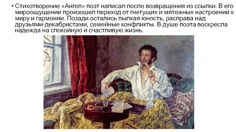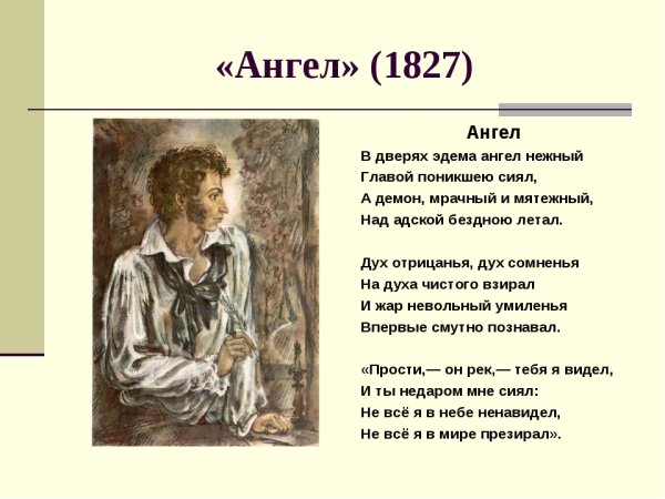 Иллюстрация к стихотворению Пушкина "Ангел" - это визуальное отражение глубокой и мистической темы, затронутой в произведении. Через изображение ангела автор передает эфирность и небесность этого существа, его связь с высшими силами. Иллюстрация может быть выполнена в элегантном и легком стиле, чтобы подчеркнуть хрупкость и прозрачность ангельской природы. Она может содержать яркие и насыщенные цвета, которые символизируют духовность и светлое начало. Кроме того, иллюстрация может передавать и печальный или задумчивый настрой, присущий стихотворению, чтобы вызвать у зрителя эмоциональное откликание на произведение Пушкина. В целом, иллюстрация к стихотворению "Ангел" создает атмосферу загадочности и религиозности, помогая читателю погрузиться в волшебный мир поэзии и ощутить его глубину.