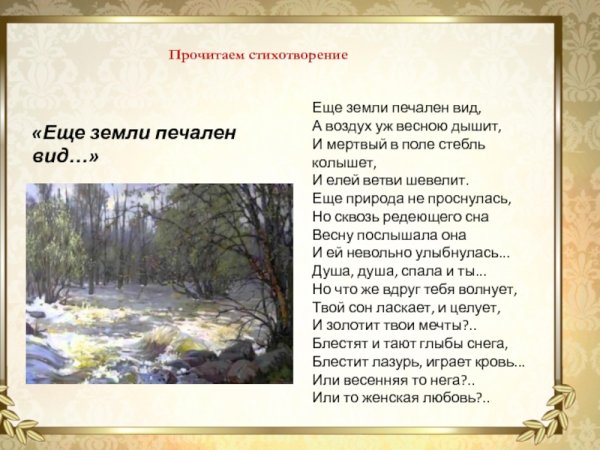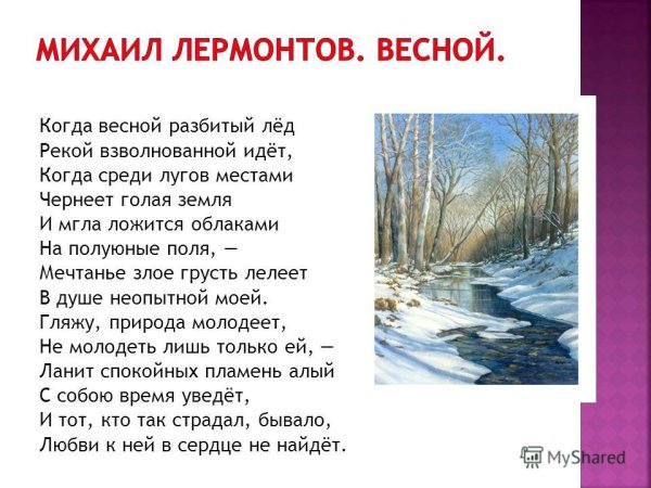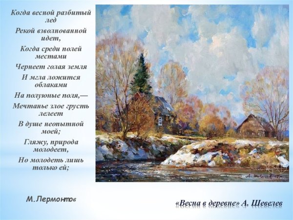 Иллюстрация к стихотворению Лермонтова "Весна" воплощает в себе всю красоту и эмоциональность этого произведения. Картина передает атмосферу пробуждающейся природы, где яркие цвета и сочные оттенки символизируют новую жизнь, надежду и возрождение. Нежные лепестки цветов, зеленая листва и пышные поля раскрываются на холсте, словно оживая под влиянием первых лучей теплого весеннего солнца. Эта иллюстрация позволяет зрителю окунуться в мир поэзии и вдохновиться ее эмоциональной глубиной, создавая гармоничное сочетание слов и образов.
