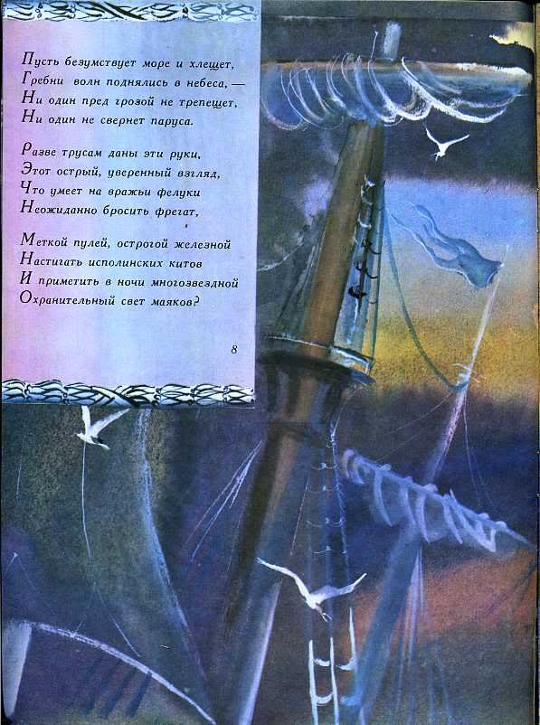 Иллюстрации к стихотворению "Капитаны" Анны Ахматовой великолепно передают эмоциональную глубину произведения. Каждая рисунок создает атмосферу морского приключения и подчеркивает силу и храбрость главных героев - капитанов. Они изображены во всей своей величественности и мужестве, позволяя зрителю проникнуться их стойкостью и безупречной преданностью своему делу. Используя яркие цвета и простые формы, иллюстраторы умело передают неповторимую атмосферу моря и его бурных стихий. Благодаря этим иллюстрациям, стихотворение "Капитаны" оживает на страницах книги, погружая читателя в удивительный и опасный мир морских приключений.