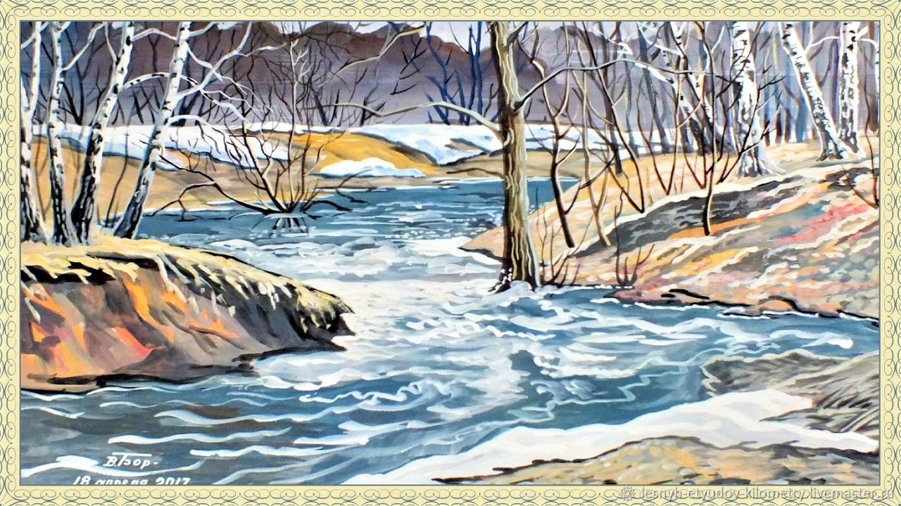 Иллюстрация к рассказу "Весенние воды" является ярким и живописным изображением природного явления, которое происходит каждую весну. На иллюстрации можно увидеть потоки прозрачной воды, бурно текущие по горам и долинам, создавая мощные водопады и водные завесы. Освежающая зелень молодых побегов и цветов сопровождает это зрелище, передавая атмосферу обновления и пробуждения природы после зимней спячки. Величественные горы и бескрайнее небо добавляют картине особой эстетической привлекательности и создают настроение гармонии и вдохновения. Иллюстрация к рассказу "Весенние воды" отлично передает образы и эмоции, связанные с этим удивительным явлением природы, заставляя зрителя окунуться в волшебный мир весны.