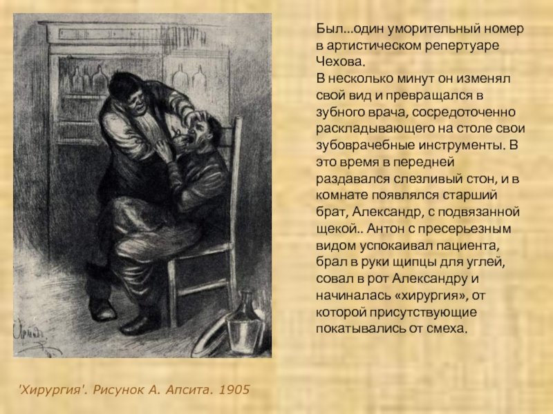 Иллюстрации к произведению "Хирургия" Чехова - это визуальное дополнение к знаменитому рассказу, которое позволяет окунуться в атмосферу истории и увидеть ее с новой стороны. Каждая картинка передает основные моменты сюжета и создает неповторимую эмоциональную атмосферу произведения. Благодаря этим иллюстрациям, читатель может лучше представить себе главных героев, их эмоции и переживания, а также окружающую обстановку. Сочетание слов и изображений великого Чехова создает неповторимую симбиозу, погружая нас в мир хирургической операции и вызывая самые разные чувства. Иллюстрации к произведению "Хирургия" Чехова - это не просто картинки, а частичка искусства, которая помогает нам лучше понять и ощутить глубину сюжета и авторское видение.