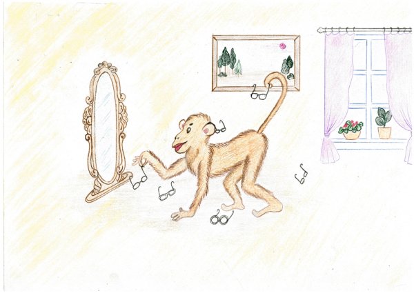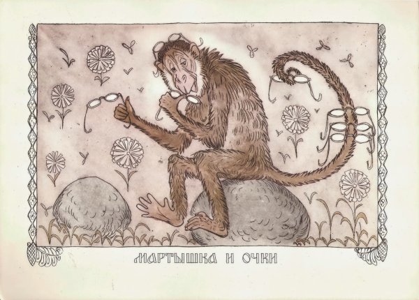 Иллюстрация к произведению "Мартышка и очки" является живописной визуализацией этой занимательной и увлекательной истории. На картине можно увидеть маленькую, коварную мартышку, которая с любопытством рассматривает пару блистательных очков. Ее озорные глаза полны неподдельного восхищения и жадности, ведь эти очки - настоящее сокровище для нее. Художник прекрасно передал выразительность лица мартышки, ее раздумия и возможное решение сделать попытку завладеть этими очками. Иллюстрация с юмором и легкостью раскрывает основную тему произведения, вызывая у читателя интерес и желание узнать, насколько успешна будет попытка мартышки завладеть непомерным богатством в виде этих блестящих очков.