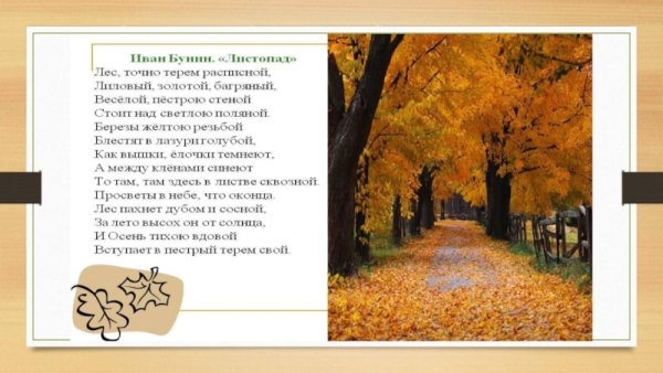 В стихотворении "Листопад" Ивана Бунина прекрасно описана осень с ее необыкновенной красотой и грустной мелодией. Словно яркая иллюстрация, каждая строфа передает нам образы пожелтевших листьев, плавно падающих на землю под ветерком осеннего ветра. Автор в своей поэзии умело сочетает природную красоту со смутными эмоциями и тоской, которые так часто сопровождают это время года. Листопад становится символом уходящей жизни и времени, вызывая у нас размышления о бренности всего прекрасного. В результате, яркая иллюстрация этого стихотворения завораживает своей глубиной и вызывает смешанные чувства, заставляя задуматься о быстротечности нашего бытия.