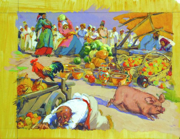 Иллюстрация к произведению Гоголя "Сорочинская ярмарка" воплощает в себе атмосферу живописного сельского праздника. Яркие и выразительные краски передают образы людей, суету и шум ярмарочной толпы, создавая ощущение движения и жизни на картине. Каждый персонаж изображен с большой детализацией, что позволяет зрителю увидеть все нюансы и особенности поведения каждого героя. Отличительной чертой иллюстрации является аутентичность исторического периода, в котором проходит событие. Это помогает зрителю проникнуться духом времени и окунуться в атмосферу знаменитой сорочинской ярмарки.