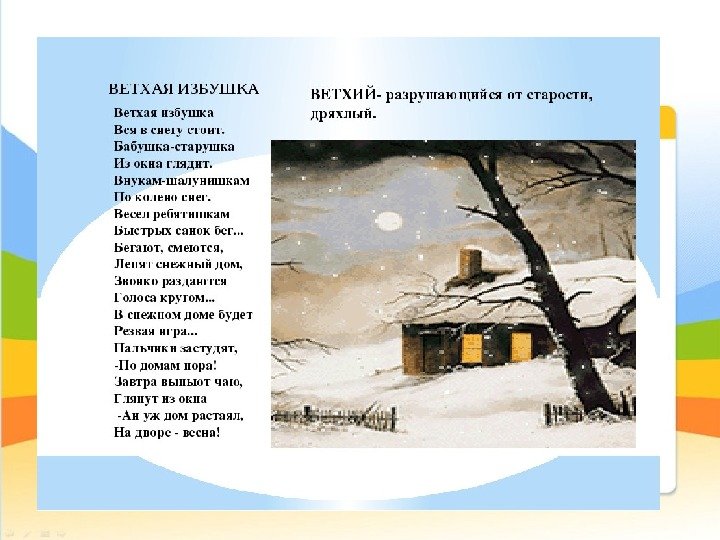 Ветхая избушка - это прекрасная иллюстрация к стихотворению, которая моментально переносит нас в атмосферу прошлых времен. Ее скромное и старинное обличье вызывает ностальгию и воспоминания о далеких эпохах, когда жизнь была проста и связана с природой. Рассыпанный шифер на крыше, треснутые окна и почерневшие стены говорят о богатой истории этого места. Ветхая избушка - символ умиротворения и тишины, где время останавливается, чтобы мы могли насладиться моментом и погрузиться в свои мысли. Эта иллюстрация притягивает взгляд и заставляет задуматься о мимолетности жизни, о том, как ценны и необычайны простые, но запоминающиеся картинки. Ветхая избушка - это воплощение поэзии и романтики, которые оживают в наших сердцах и вдохновляют на новые творческие открытия.