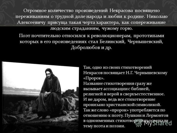 Иллюстрация к стихотворению пророка Некрасова - это визуальное воплощение глубины и силы его слов. В ней передается не только сюжет и настроение произведения, но и сама эмоциональная и культурная сущность поэзии. Иллюстратор, работая над этим проектом, должен уметь перенести на холст или бумагу всю тонкость и многогранность этих стихов, чтобы они стали еще ближе и понятнее для зрителя. Это задача не из легких, но результатом такого сотрудничества между поэтом и художником может быть настоящий шедевр, объединяющий в себе две формы искусства и привносящий новую глубину и интерпретацию в классическое произведение.