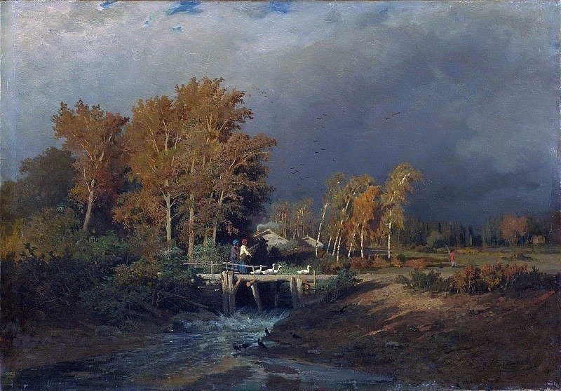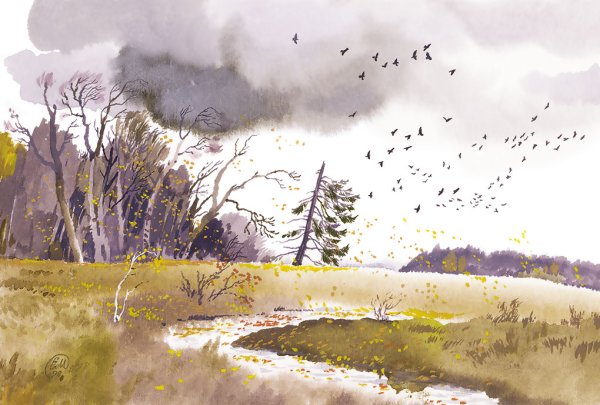 Иллюстрация к произведению Н. А. Некрасова "Перед дождем" описывает мрачную и напряженную атмосферу, витающую над городом перед наступлением дождя. Художник передает это настроение через свои кисточные штрихи, создавая эффекты сумерек и отражений в лужах. Темные облака нависают над пейзажем, заставляя зрителя ощутить предвестник приближающейся бури. Весь картина пропитана чувством неизбежности и тревоги, словно все сущее держится на грани. Эта иллюстрация воплощает в себе трансцендентальность природы, ее способность управлять нашим настроением и создавать особое внутреннее состояние.