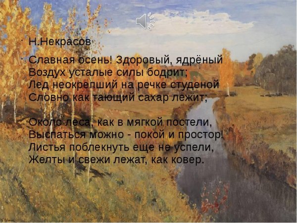 Славная осень - это прекрасное произведение Н. А. Некрасова, которое нарисовано великолепной иллюстрацией. В нем передана атмосфера осеннего времени года с его яркими красками, падающими листьями и теплым светом солнца. Иллюстрация оживляет слова поэта, позволяет нам окунуться в его мир и насладиться уникальной красотой осенней природы. Каждая деталь иллюстрации точно передает настроение и эмоции произведения, делая его еще более ярким и запоминающимся. Славная осень - это не только литературное произведение, но и настоящая искусство, которое подарит радость и вдохновение каждому, кто его увидит.