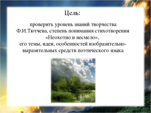 Иллюстрация к произведению Тютчева "Неохотно и несмело" воплощает в себе глубокое эмоциональное состояние, которое характеризует автора. С помощью изобразительных элементов, таких как цветовая гамма и композиция, художник передает тонкую игру чувств и настроений, присущих этому стихотворению. Взгляд зрителя уводится в мир внутренних переживаний, где каждая деталь является символом и отражает тему произведения. Эта иллюстрация погружает нас в атмосферу стихотворения, позволяя полностью ощутить его смысл и глубину.