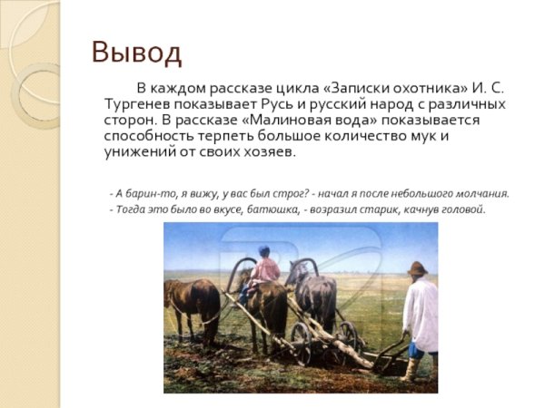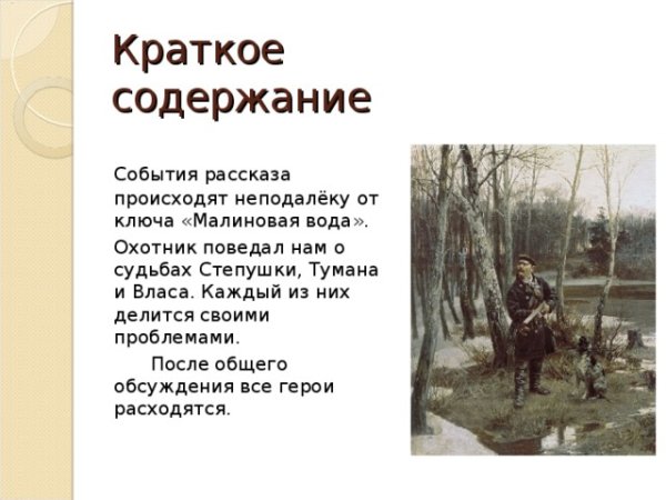 Иллюстрация к рассказу "Малиновая вода" Ивана Тургенева ярко и точно передает атмосферу произведения. На картине зритель видит изображение красивого и живописного пейзажа с ярко-красными малиновыми кустами, раскинувшимися на поле. Это символ любви, страсти и сильных эмоций, которые пронизывают рассказ. Кроме того, иллюстрация может отражать главную тему произведения - невозможность удержать и сохранить прекрасное в своей жизни. В целом, данная иллюстрация дополняет текст, придавая ему визуальную глубину и эмоциональный оттенок.