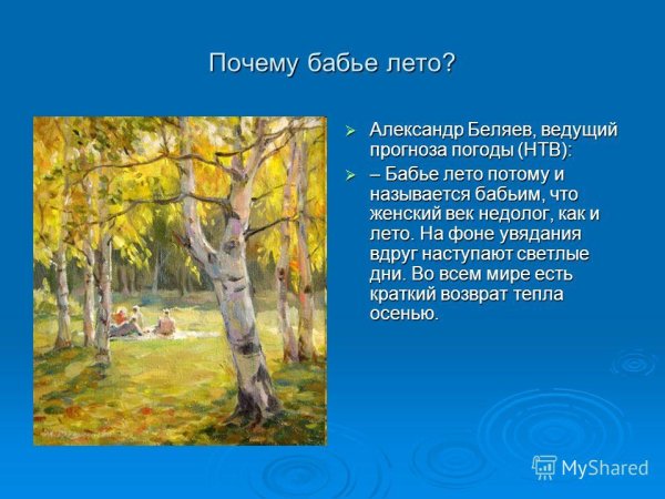 Яркая иллюстрация к стихотворению "Бабье лето" Анатолия Кедрина погружает нас в атмосферу уникального времени года. Нежные осенние оттенки и теплые краски создают ощущение спокойствия и умиротворения, которое характерно для этого периода. Похоже, что листья деревьев словно танцуют на легком ветерке, образуя разнообразные фигуры, отражающие пленительную красоту природы. В каждом элементе иллюстрации можно увидеть причудливость и чудесность, что отлично сочетается с магическими образами, созданными автором в его произведении. Картина передает тепло и свет, пробуждает в нас чувство радости и умиротворения, окутывая нас неповторимым очарованием бабьего лета.