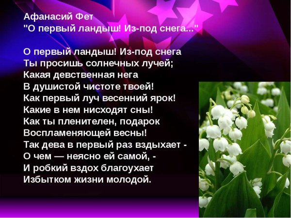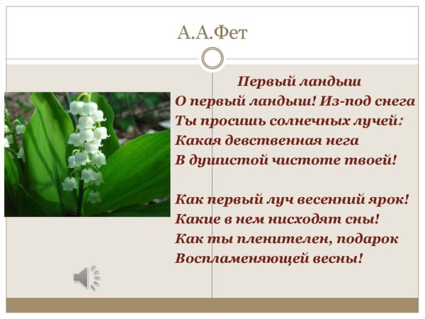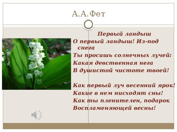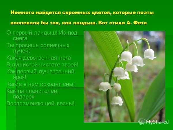 Эта прекрасная иллюстрация к стихотворению Фета "Первый ландыш" позволяет нам в полной мере ощутить всю красоту и нежность этого произведения. На картине изображен первый распустившийся ландыш, символ весны и возрождения. Его нежные белые лепестки сияют на фоне зеленой травы и яркого голубого неба. Изображение передает всю эмоциональность стихотворения, в котором поэт описывает свои чувства при виде этого прекрасного цветка. Иллюстрация создает атмосферу надежды и радости, наполняя нас теплом и любовью к природе. Это настоящий шедевр, который углубляет наше восприятие произведения и позволяет нам насладиться его красотой еще больше.