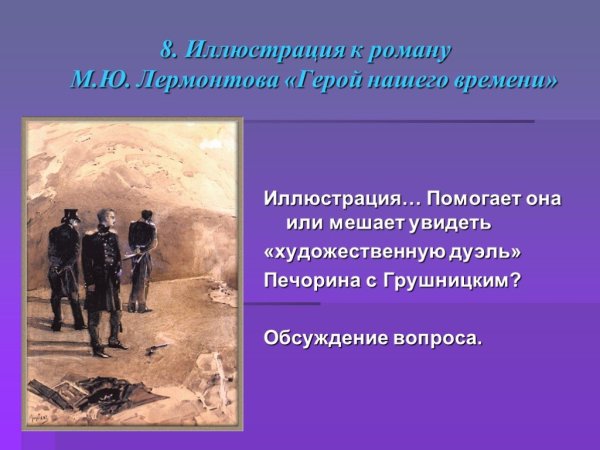 Погрузитесь в великолепный мир произведения Михаила Лермонтова "Герой нашего времени" с его неповторимыми иллюстрациями. Каждая из них передает настроение и атмосферу знаменитого романа, позволяя читателю еще глубже проникнуть в душевные состояния персонажей и окружающую их среду. От ярких пейзажей Кавказских гор до волнующих портретов героев, эти иллюстрации станут прекрасным дополнением к вашему чтению, помогая визуализировать события и создавая неповторимую эстетическую атмосферу. Наслаждайтесь увлекательным путешествием вместе с героями этого великого произведения и его впечатляющими иллюстрациями!