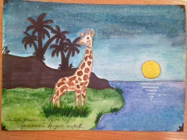 Иллюстрация к стихотворению "Жираф" Анны Ахматовой, которую можно выполнить карандашом, представляет собой изображение грациозного животного в своей естественной среде обитания. Гумилевский стихотворный текст описывает жирафа как символ удивительной красоты и неповторимости природы. Используя тонкие штрихи и переходы от светлых до темных оттенков, художник может передать особенности окраски и фактуры жирафа, его изящную форму и высокие пропорции. Карандашная иллюстрация позволяет подчеркнуть детализацию и реалистичность изображения, создавая эффект присутствия и уникальности этого прекрасного существа.