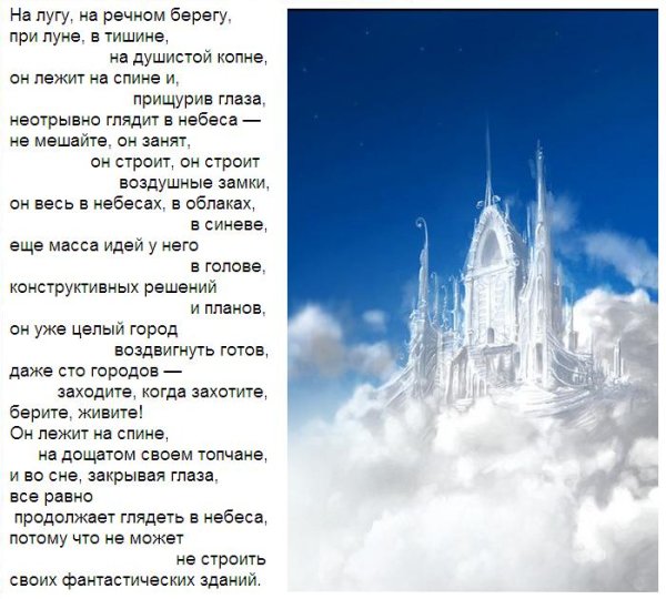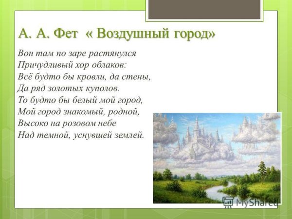 Иллюстрация к стихотворению "Фета воздушный город" воплощает в себе магию и великолепие этого литературного произведения. Она позволяет читателю окунуться в удивительный мир, созданный автором, и представить себе воздушный город, который описывается в стихах. Изображение передает легкость и неповторимость атмосферы данного произведения, словно заставляя зрителя парить в небесах вместе с персонажами стихотворения. Каждая деталь иллюстрации тщательно проработана, чтобы передать все оттенки и эмоции, которые описывает поэт. Это визуальное воплощение стихотворения "Фета воздушный город" позволяет полностью погрузиться в его мир и насладиться всей его красотой и философией.