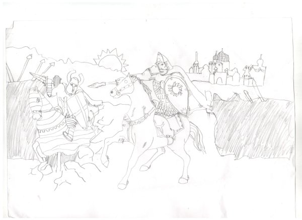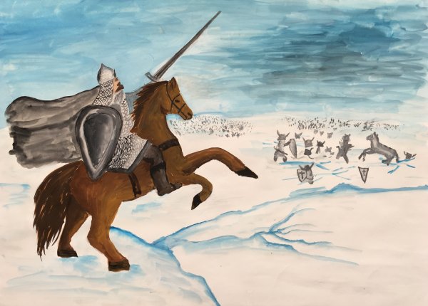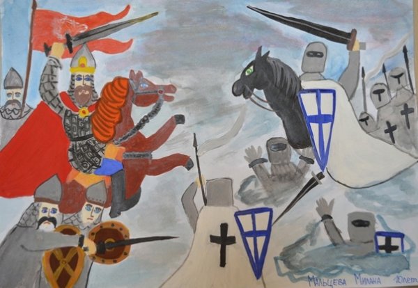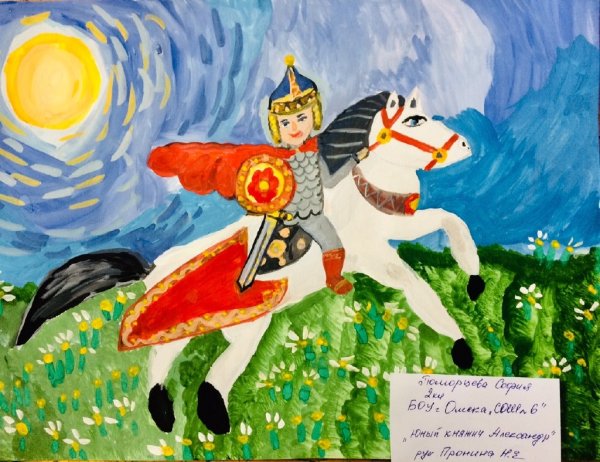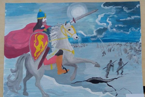 Иллюстрация к произведению "Александр Невский" композитора Сергея Прокофьева - это яркий и увлекательный детский рисунок, который визуально передает основные события и настроение этой знаменитой музыкальной композиции. На нем изображены герои исторической эпопеи - Александр Невский, битва на Чудском озере, а также другие эпизоды из жизни великого воина и правителя. Каждая деталь тщательно проработана: яркие краски, выразительные лица персонажей и динамичные движения создают ощущение, будто события разворачиваются прямо перед глазами ребенка. Эта иллюстрация не только поможет малышу лучше понять сюжет произведения, но и станет отличным инструментом для развития детского воображения и интереса к музыке.