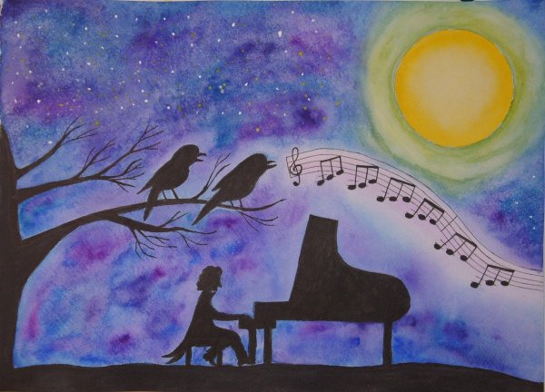 Иллюстрация к произведению "Вечер" воплощает в себе всю таинственность и загадочность этого времени суток. На картине изображены прекрасные закатные оттенки, плавно перетекающие друг в друга — от яркого оранжевого до нежного фиолетового. Вдали виднеется силуэт города, окруженного сумерками, а в небе танцуют последние лучи заходящего солнца. Все вокруг наполнено спокойствием и умиротворением, создавая атмосферу романтичности и меланхолии. Эта иллюстрация может стать идеальным дополнением к произведению, подчеркивая его эмоциональную глубину и вызывая чувство восхищения перед величественной природой.
