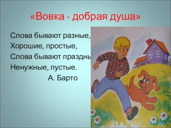 Вовка – это яркая иллюстрация к стихотворению о доброй душе. Он представляет собой воплощение человеческого добродушия и сострадания. Своими добрыми делами и отзывчивым характером Вовка вдохновляет нас на более доброе общение и помощь другим людям. Его образ напоминает нам о важности быть добрыми и заботиться о тех, кто находится рядом с нами. Каждая иллюстрация с Вовкой – это маленькое напоминание о том, как сделать этот мир лучше местом для всех.