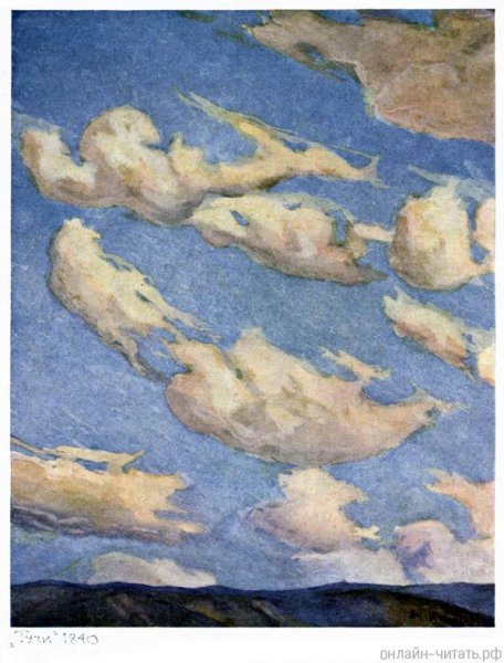 Иллюстрация к стихотворению М.Ю. Лермонтова "Тучи" представляет собой зрелище, которое погружает зрителя в атмосферу загадочности и мрачного притяжения. На картине изображены темные, густые тучи, переплетающиеся на фоне неба. Силуэты деревьев и ландшафт внизу подчеркивают обстановку таинственности и неопределенности. Цветовая палитра - от глубокого черного до серых оттенков, создает впечатление угрозы и неизвестности, что соответствует настроению стихотворения. Иллюстрация к стихотворению "Тучи" является выразительным воплощением бурных эмоций и внутреннего мира поэта, который передается через прекрасно переданную атмосферу и олицетворение природных элементов.