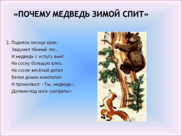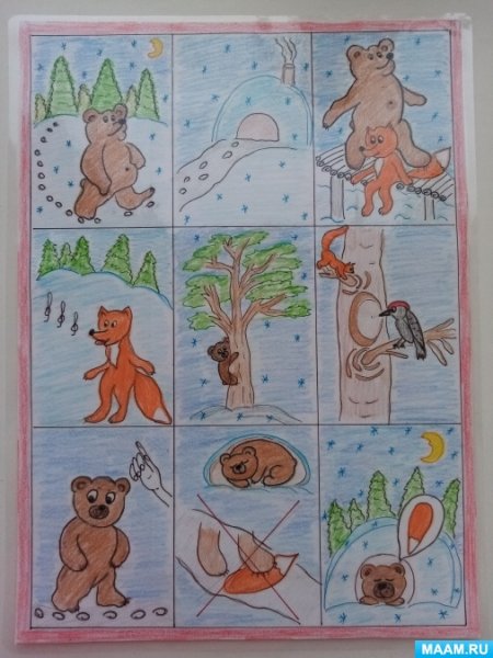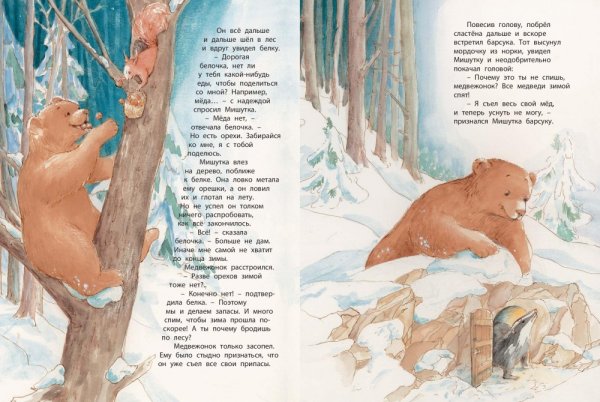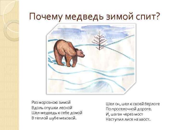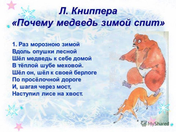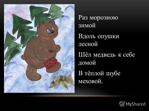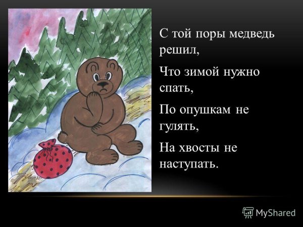Иллюстрации к стихотворению "Почему медведь зимой спит" представляют собой магическое путешествие в мир зимней природы. Каждая иллюстрация оживляет слова стихотворения, заставляя зрителя проникнуться атмосферой тишины и спокойствия, которые царят во время зимнего сна медведя. Мощные и грозные снежные горы, покрытые пушистым снегом, переливающимся на солнце, создают ощущение величия и неприступности природы. Вдалеке виднеется уютная и теплая пещера, где медведь спит, подготавливаясь к новому пробуждению. Нежные и теплые тона иллюстраций передают чувство умиротворения и безмятежности, которые сопровождают медведя во время его зимнего сна. Эти иллюстрации не только визуально привлекательны, но и позволяют читателю почувствовать глубину и значимость зимнего сна медведя, воссоздавая перед ним уникальную картину зимней природы.