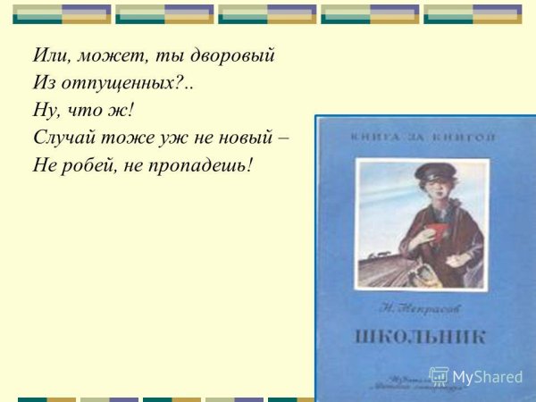 Иллюстрация к стихотворению "Школьник" Н.А. Некрасова - это визуальное отражение образа, созданного поэтом в своем произведении. В ней можно увидеть юного школьника с рюкзаком на спине и тетрадью в руках, направляющегося к своим урокам. На его лице отражается трудолюбие и стремление к знаниям, а в глазах видны искренность и наивность детства. Каждая деталь и цвет в иллюстрации передает атмосферу школьной повседневности и учебного процесса. Она приглашает зрителя в мир школьных будней, где каждый шаг школьника наполнен надеждой и желанием стать умнее. Иллюстрация к стихотворению "Школьник" является не только прекрасным дополнением к произведению, но и визуальным воплощением его главной идеи - важности образования и стремления к знаниям.