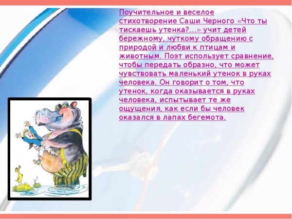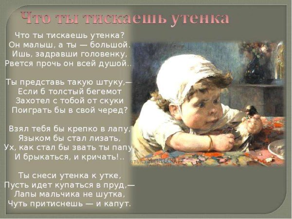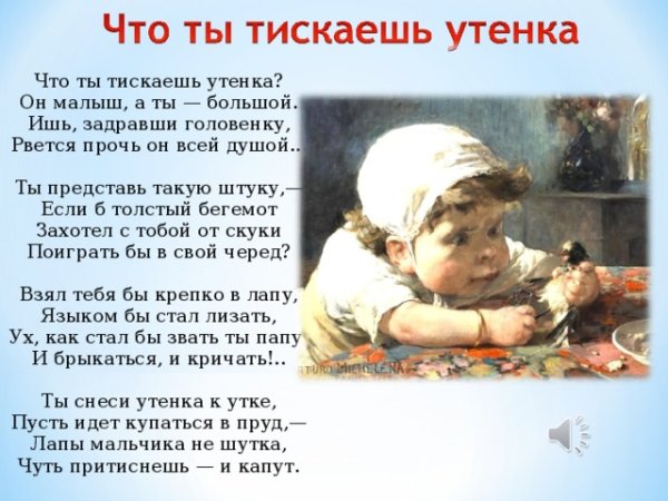 Иллюстрация к стихотворению Саши Черного про утенка - это нежное и трогательное изображение маленького пушистого создания, которое символизирует невинность и хрупкость. Поэтический текст описывает приход в мир утенка, его первые шаги и открытия, его радость и игривость. Иллюстрация передает всю эту нежность и непосредственность, заставляя зрителей окунуться в мир детства и чистого счастья. Каждая линия и цвет на рисунке тщательно проработаны, чтобы выразить весь спектр эмоций, которые вызывает стихотворение и его главный герой - утенок. Благодаря ярким краскам и детализации иллюстрации, она становится настоящей поддержкой и дополнением к стихотворению, помогая зрителю углубиться в его смысл и проникнуться его атмосферой.