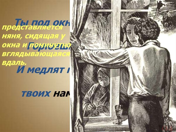 Иллюстрация к произведению Пушкина "Няне" воплощает в себе глубокие эмоции и тонкую художественность этого произведения. На картине видно изображение няни, которая заботливо держит на руках младенца. Ее лицо выражает трепетное чувство материнской любви и опытности, она смотрит на ребенка с нежностью и заботой. Краски яркие и пастельные, создают атмосферу интимности и тепла. Вся композиция наполнена пронизывающей тишиной, что придает картине особый загадочный шарм. Иллюстрация передает все эмоциональные и философские нюансы произведения, позволяя зрителю окунуться в его глубину и почувствовать всю силу родительской любви и заботы.