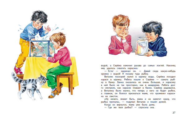 Прекрасная иллюстрация к рассказу "Карасик" Николая Носова позволяет окунуться в удивительный мир детской фантазии. На ней изображены яркие и запоминающиеся персонажи, такие как сам Карасик - проказливый и любопытный мальчик, а также его верные друзья - смешной Корнелиус, смелый Максим и нежная Розалка. Иллюстрация передает атмосферу игры и приключений, которые ожидают маленького читателя на страницах этой замечательной книги. С помощью ярких красок и мастерства художника, иллюстрация становится отличным спутником по пути в волшебный мир детской литературы.