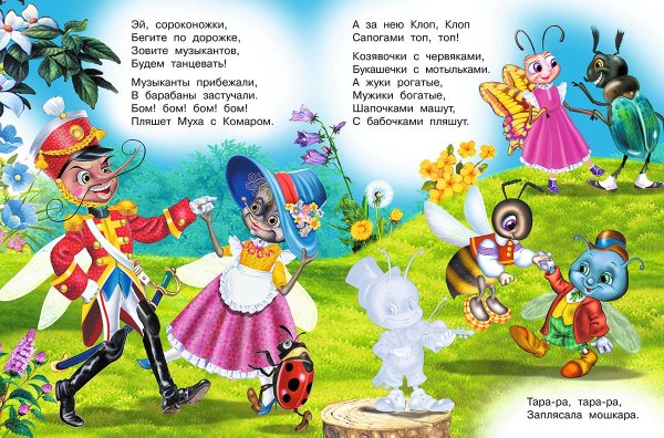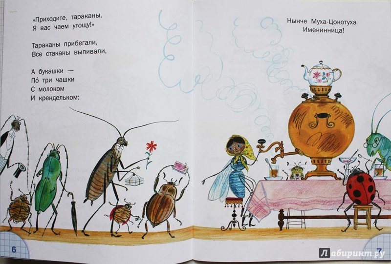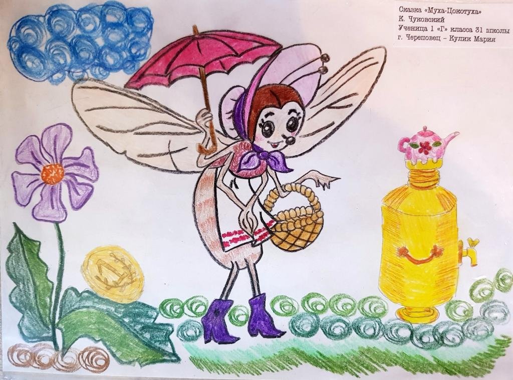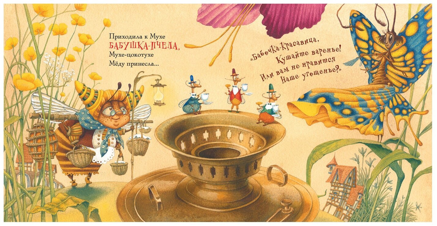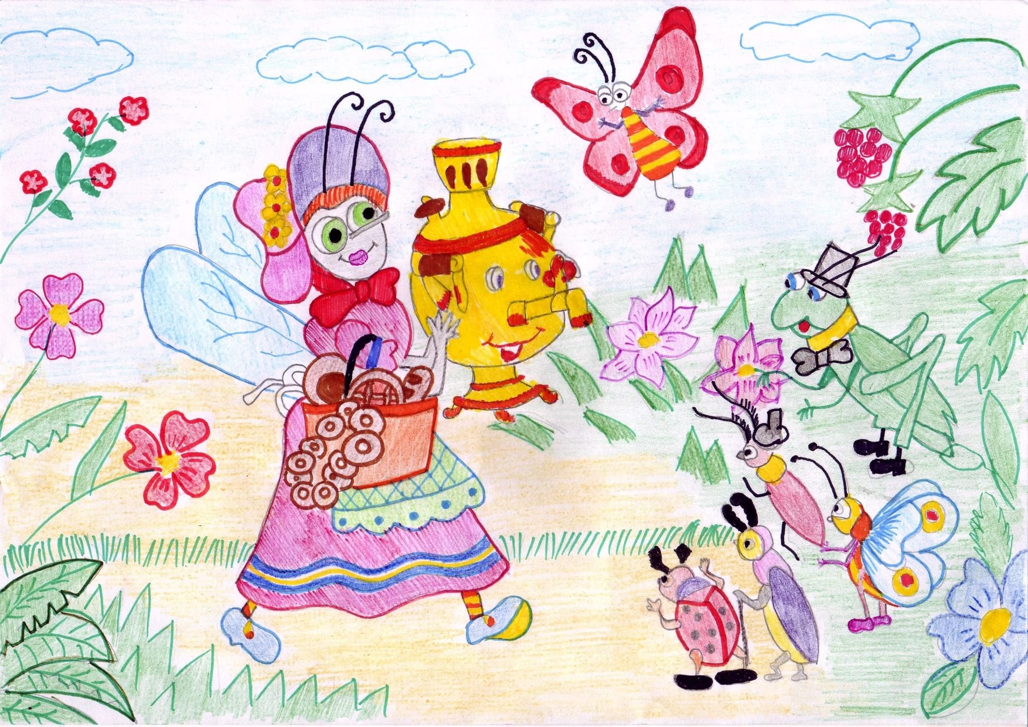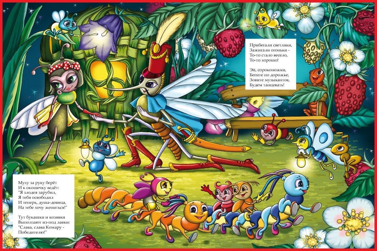 Иллюстрация к произведению "Муха-Цокотуха" является визуальным отображением магического мира, созданного русским писателем И. В. Шпилевским. На картине можно увидеть яркие иллюстрации, которые передают атмосферу и сюжетную линию сказки. Композиция захватывает взгляд зрителя и позволяет ему окунуться в мир фантастических приключений Мухи-Цокотухи и других персонажей этой замечательной книги. Разнообразие цветов и деталей делают иллюстрацию живой и запоминающейся. Она привлекает внимание детей и взрослых, помогая им лучше понять и визуализировать события и образы, описанные в тексте. И, несомненно, эта яркая иллюстрация будет радовать глаза читателей и добавлять волшебства в их воображение при чтении произведения "Муха-Цокотуха".