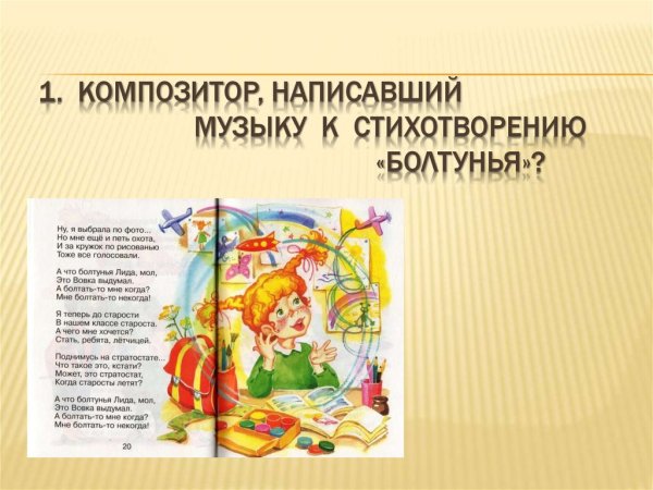 Иллюстрация к произведению "Болтунья" Прокофьева - это уникальное визуальное представление музыкальной композиции, которое позволяет зрителям глубже погрузиться в атмосферу произведения и визуализировать его мелодии и эмоциональные оттенки. Созданная на основе ярких красок и детальной проработки деталей, иллюстрация передает живость и динамичность музыки Прокофьева. Благодаря своей выразительности и оригинальности, она помогает зрителям лучше понять и почувствовать то, что автор хотел передать через свою музыку. Она становится неотъемлемой частью произведения и способствует глубокому восприятию его содержания. Иллюстрация к произведению "Болтунья" Прокофьева - это великолепное творение искусства, которое позволяет зрителям окунуться в мир музыки и насладиться ее красотой и гармонией.