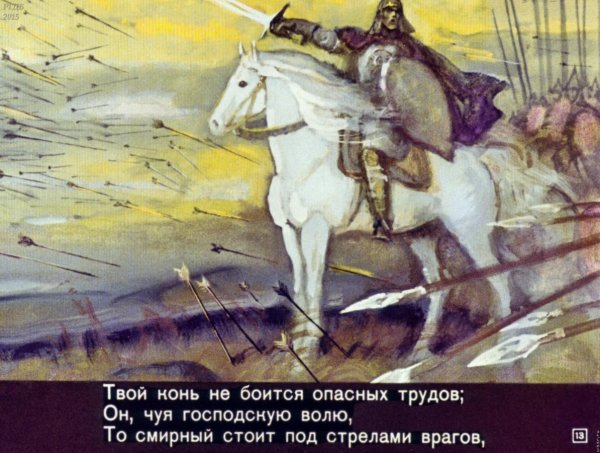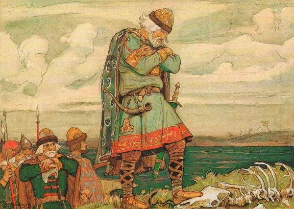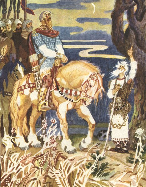 Иллюстрация к рассказу "Песнь о Вещем Олеге" является визуальным отображением главного героя этого знаменитого средневекового эпоса. Олег был могущественным воином и правителем, который вошел в историю благодаря своим подвигам и храбрости. Иллюстрация позволяет нам увидеть его во всей его славе и величии, с изображением его военной экипировки, мощной фигуры и решительного выражения лица. При этом, она также передает атмосферу древности и исторической значимости этого персонажа. Вся композиция и детали иллюстрации способствуют созданию образа Вещего Олега, который запечатлен в памяти читателей и добавляет глубину и реалистичность к этому эпическому рассказу.