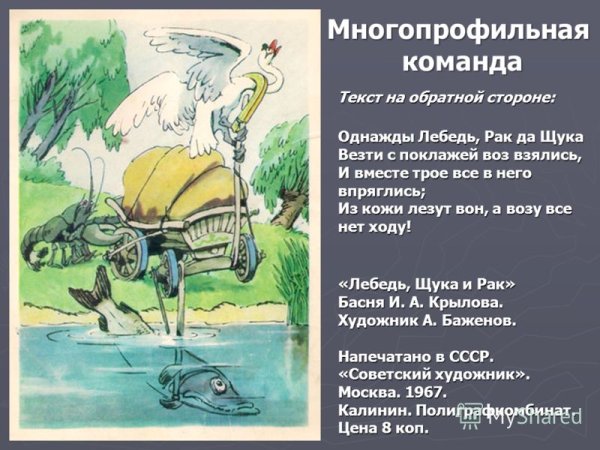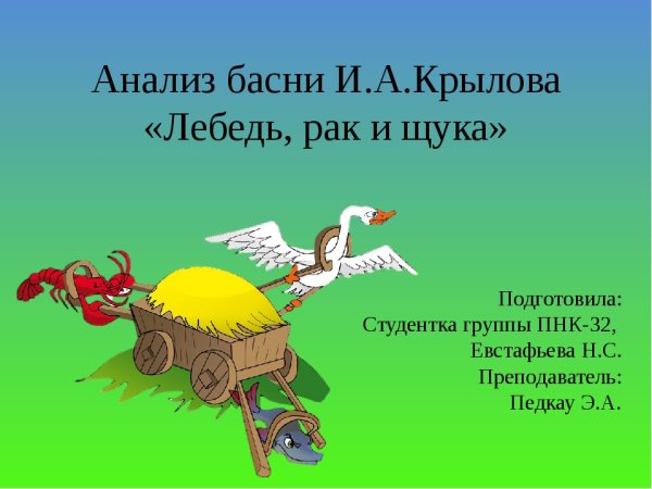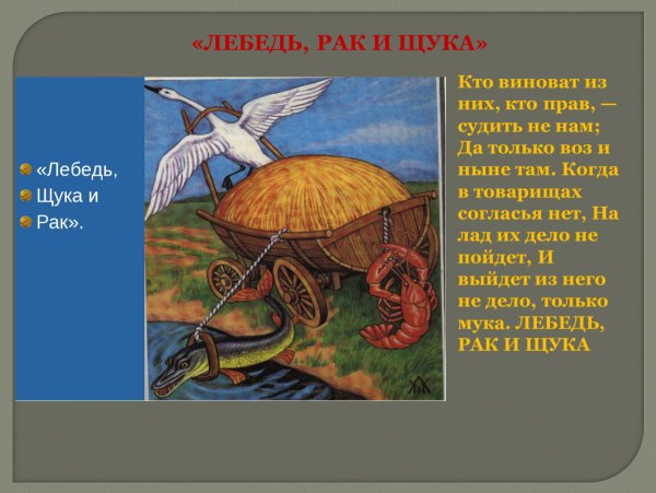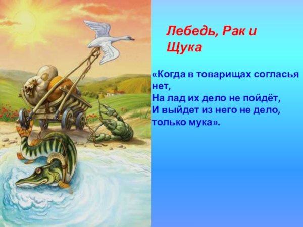 Иллюстрация к стихотворению "Лебедь, рак и щука" является важным элементом для визуализации данного произведения. С помощью изображения можно передать основные символы и идеи этого стихотворения. Она может представлять собой натюрморт или живописный пейзаж, на котором изображены лебедь, рак и щука в их символическом объединении. Важно подчеркнуть гармонию природы и ее уникальность, а также обратить внимание на важность взаимодействия различных живых существ. Иллюстрация должна быть эмоционально заряжена и способствовать глубокому погружению читателя в мир стихотворения.