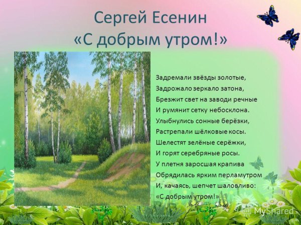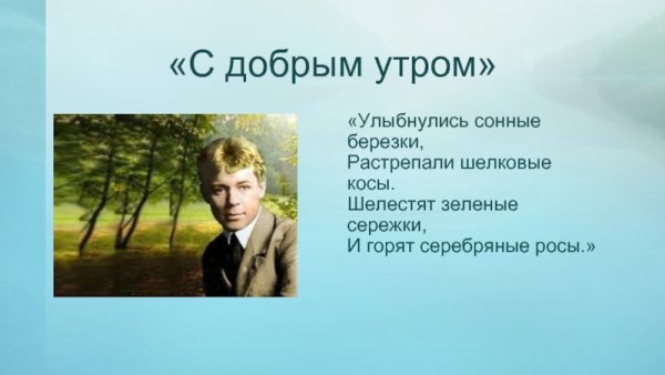 Иллюстрация к стихотворению Сергея Есенина "С добрым утром" создает атмосферу тепла и радости, полную жизненной энергии. На ней изображен прекрасный рассвет, когда первые лучи солнца проникают сквозь покрывало облачного неба. Они окутывают все вокруг яркими оттенками розового и оранжевого, создавая впечатление магического пробуждения природы. В этой идиллической картине можно увидеть зеленые поля, расстилающиеся до горизонта, и цветущие деревья, словно воплощение жизненной силы и обновления. Иллюстрация передает важность начала нового дня с оптимизмом и благодарностью за возможность наслаждаться красотой окружающего мира. Она призывает нас встречать каждое утро с улыбкой на лице и полными сердцем добрыми пожеланиями.