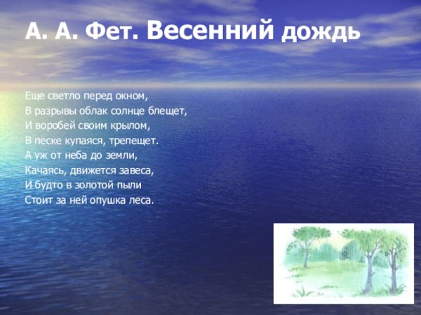 Иллюстрация к стихотворению Фета "Еще светло перед окном" — это визуальное отражение нежной и трогательной атмосферы, которую создает поэт своими словами. На картине виден яркий свет, проникающий сквозь окно и заполняющий комнату теплом и уютом. Легкие занавески плавно покачиваются на легком ветру. Видна чашка с горячим напитком на столе, вызывающая ощущение приятного домашнего уюта. Используя нежные и пастельные тона, художник передает спокойствие и теплоту этого момента. Иллюстрация приглашает зрителя окунуться в мир гармонии и позволяет ощутить красоту момента, когда еще светло перед окном.