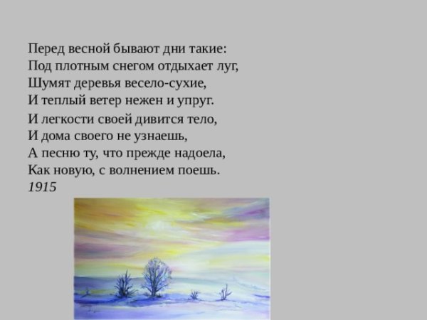 Иллюстрации к стихотворению Ахматовой "Перед весной" позволяют увидеть и почувствовать особые дни, которые предшествуют приходу долгожданного времени года. В этих иллюстрациях прекрасно передается атмосфера перехода от зимы к весне: снежные пейзажи медленно сменяются теплыми лучами солнца, первые цветы начинают пробиваться сквозь снег, а в воздухе ощущается обновление и возрождение. Иллюстрации создают впечатление надежды, ожидания и радости, отражая саму суть стихотворения и перенося нас в мир преображения. Визуальное изображение данных дней перед весной помогает читателю окунуться в атмосферу произведения и увидеть его новые грани, делая чтение еще более ярким и эмоциональным.