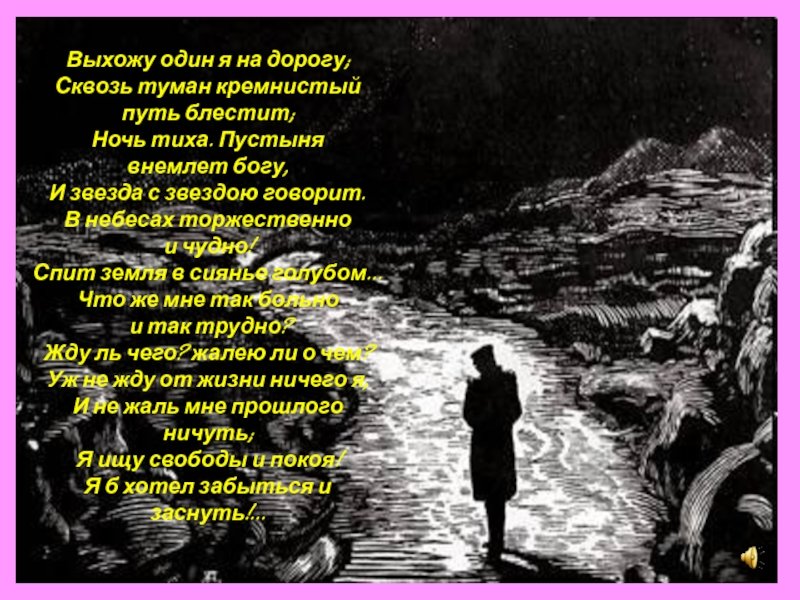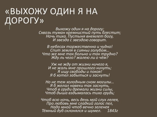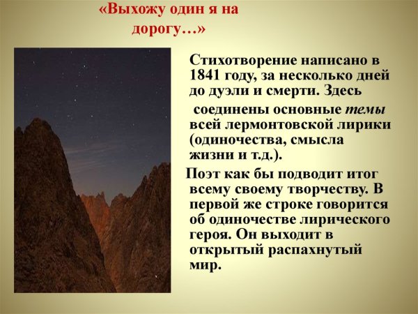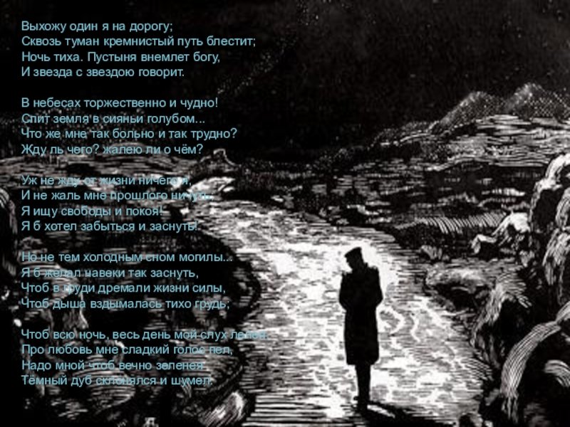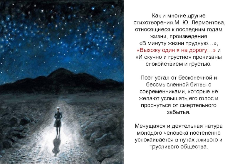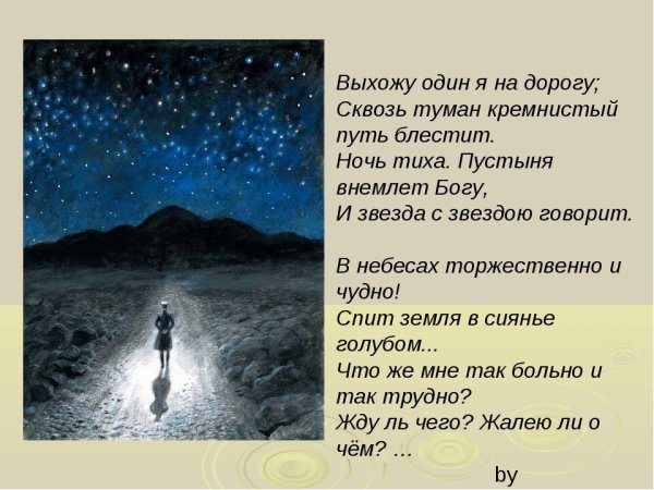 Иллюстрация к стихотворению М.Ю. Лермонтова "Выхожу один я на дорогу" - это визуальное творение, которое передает атмосферу одиночества и размышления героя. В ней можно увидеть изображение путника, выходящего на пустынную дорогу, окруженную густым лесом или бескрайними просторами природы. С помощью мягких и гармоничных цветов художник передает настроение задумчивости и спокойствия. Иллюстрация также может включать элементы символической природы, отражающие внутренний мир героя и его эмоциональное состояние. Она привлекает внимание зрителя и вызывает желание узнать больше о содержании стихотворения Лермонтова, создавая интерес к его поэзии и внутреннему миру его героев.