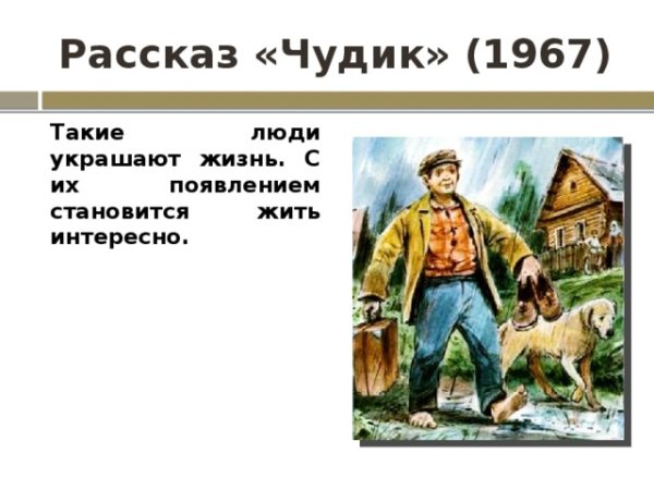 Великий русский писатель Василий Шукшин на протяжении своего творчества создал множество замечательных произведений, среди которых особое место занимает его рассказ "Чудик". В этой истории автор описывает встречу главного героя с загадочным незнакомцем, который оказывается необычным человеком - чудиком. Захватывающая интрига, яркие образы и неожиданный поворот событий делают этот рассказ по-настоящему уникальным и запоминающимся. Великолепные иллюстрации к произведению подчеркивают его особую атмосферу, помогая визуализировать образы героев и передать эмоциональную глубину их переживаний. Рассказ "Чудик" станет отличным выбором для любителей хорошей литературы, желающих окунуться в мир фантастики и философских размышлений.
