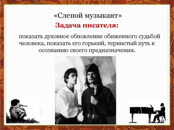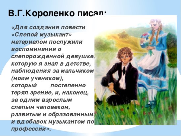 Иллюстрации к произведению "Слепой музыкант" - это великолепное визуальное дополнение к знаменитому литературному произведению. Каждая иллюстрация передает глубокий эмоциональный смысл и отражает тематику и настроение произведения. Они позволяют зрителю окунуться в мир главного героя, слепого музыканта, и пережить все его радости и печали через красочные и выразительные образы. Используя различные художественные техники и стили, иллюстраторы передают музыкальность и гармонию мира, созданные автором произведения. Эти иллюстрации позволяют нам увидеть произведение с другой стороны и проникнуться его глубиной и красотой. Безусловно, иллюстрации к произведению "Слепой музыкант" являются настоящим произведением искусства и ярким примером того, как визуальное и литературное искусство могут сливаться в единое целое, создавая неповторимую атмосферу и вдохновляя читателей на новые эмоциональные переживания.