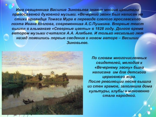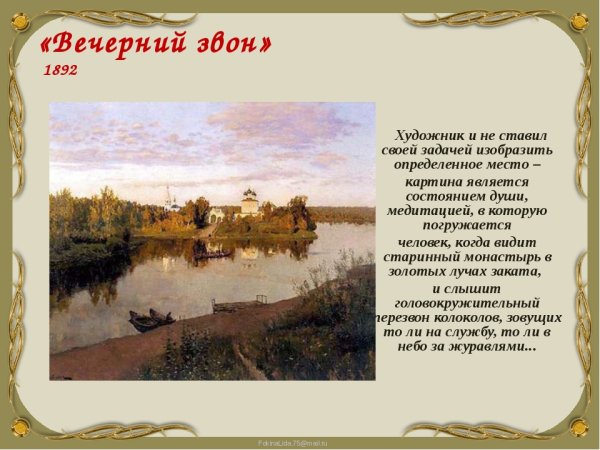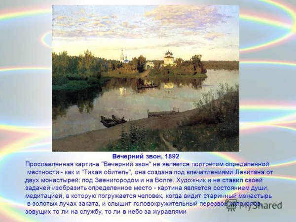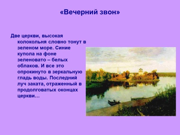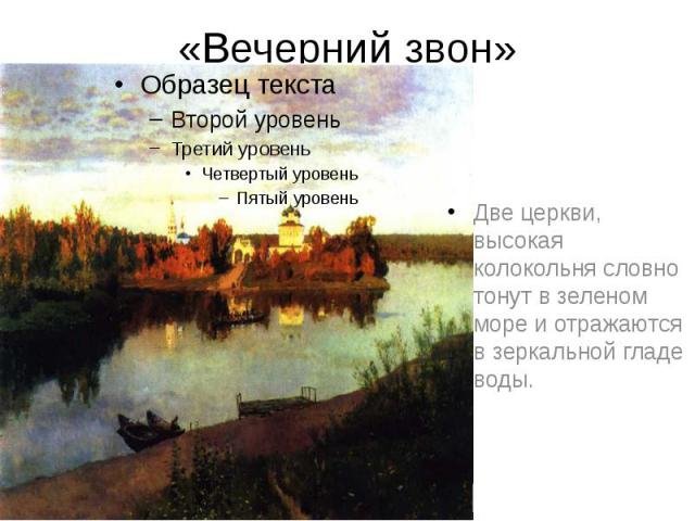 Иллюстрация к произведению "Вечерний звон" представляет собой живописное воплощение момента, когда последние лучи солнца проникают сквозь густую листву деревьев и освещают умиротворенную природу. На фоне яркого неба виднеются контуры церковных колоколов, создавая атмосферу таинственности и спокойствия. Весь пейзаж пропитан эмоциональным зарядом, который отражает гармонию и красоту окружающего мира. Иллюстрация вызывает чувство умиротворения и приглашает зрителя окунуться в мир тихой мелодии вечернего звона.